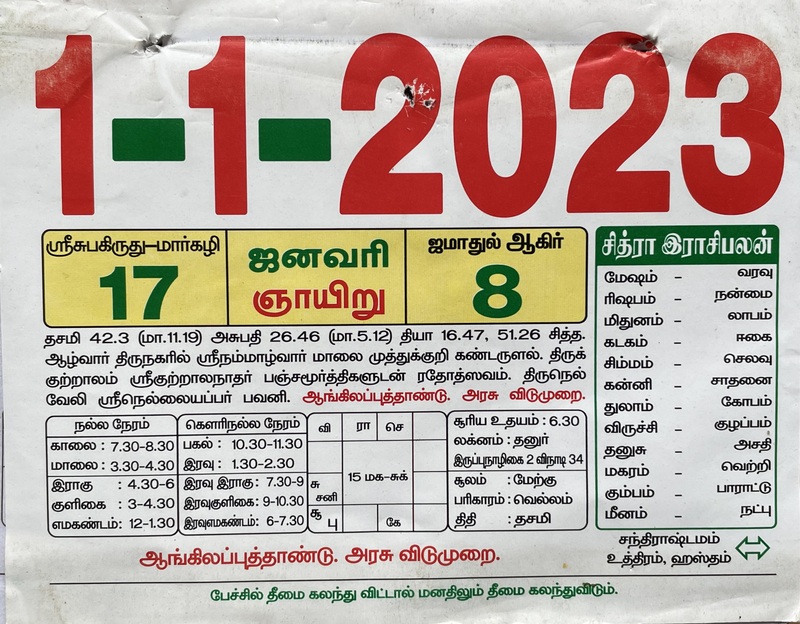| நாள்/Day | ஞாயிறு (Sunday) |