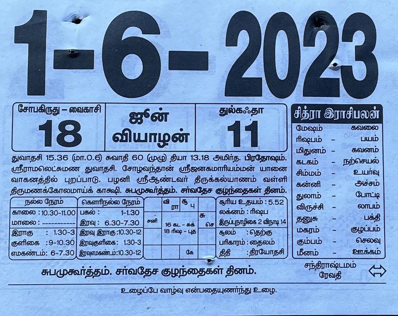 | நாள்/Day | ஞாயிறு (Sunday) |