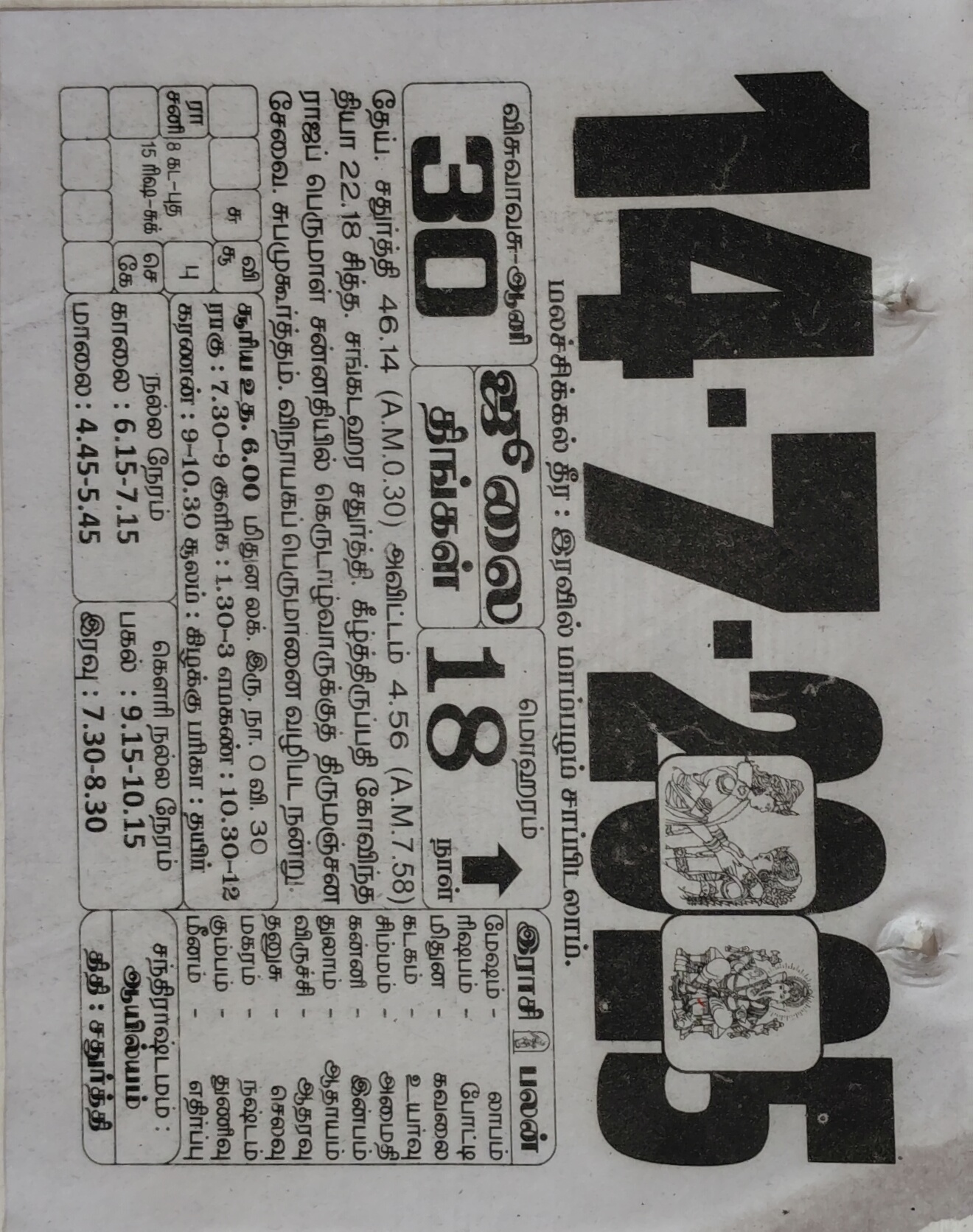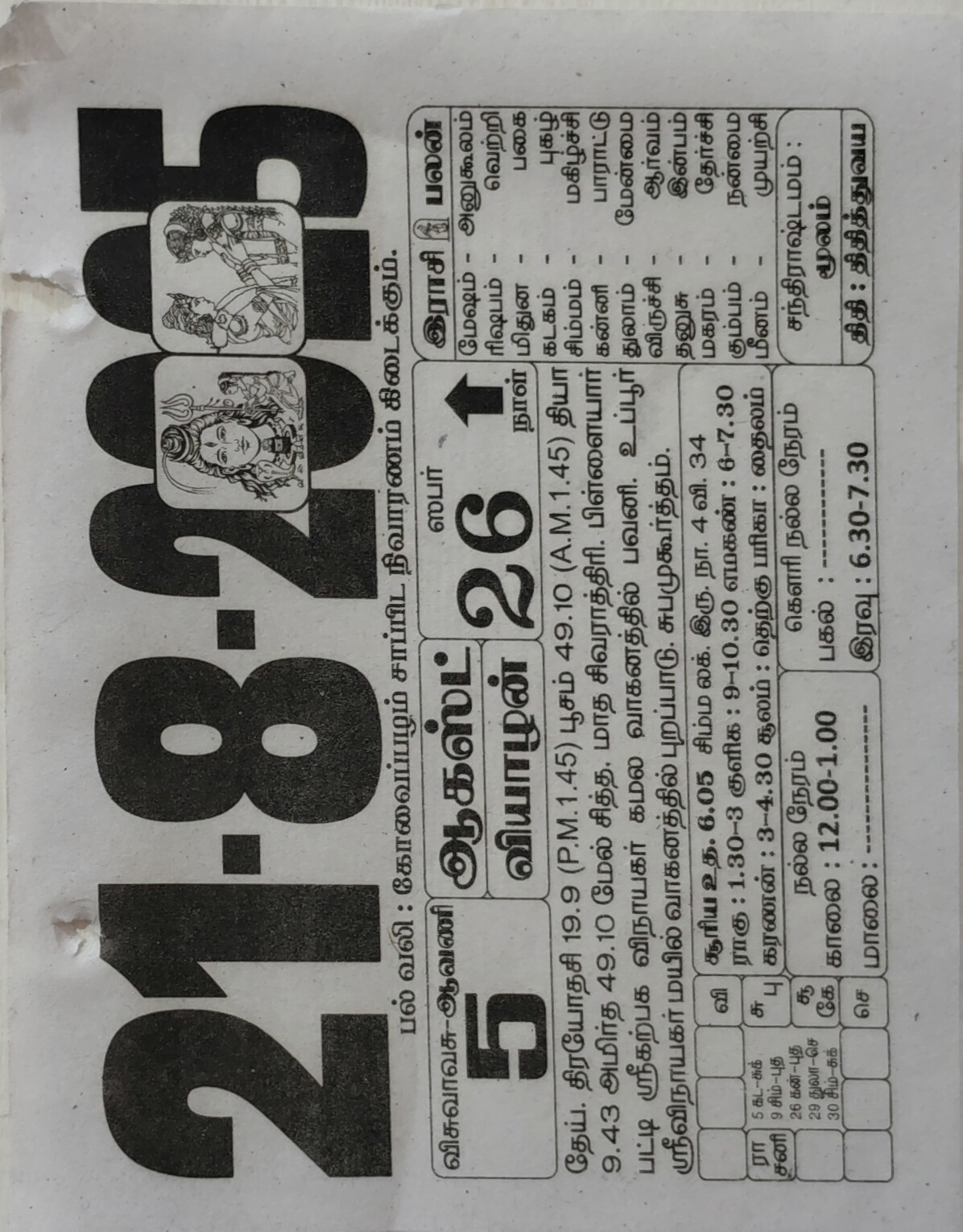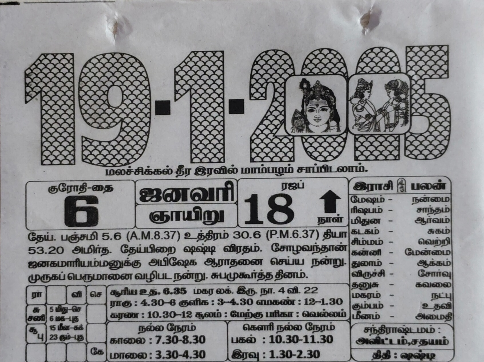 | நாள்/Day | ஞாயிறு (Sunday) |