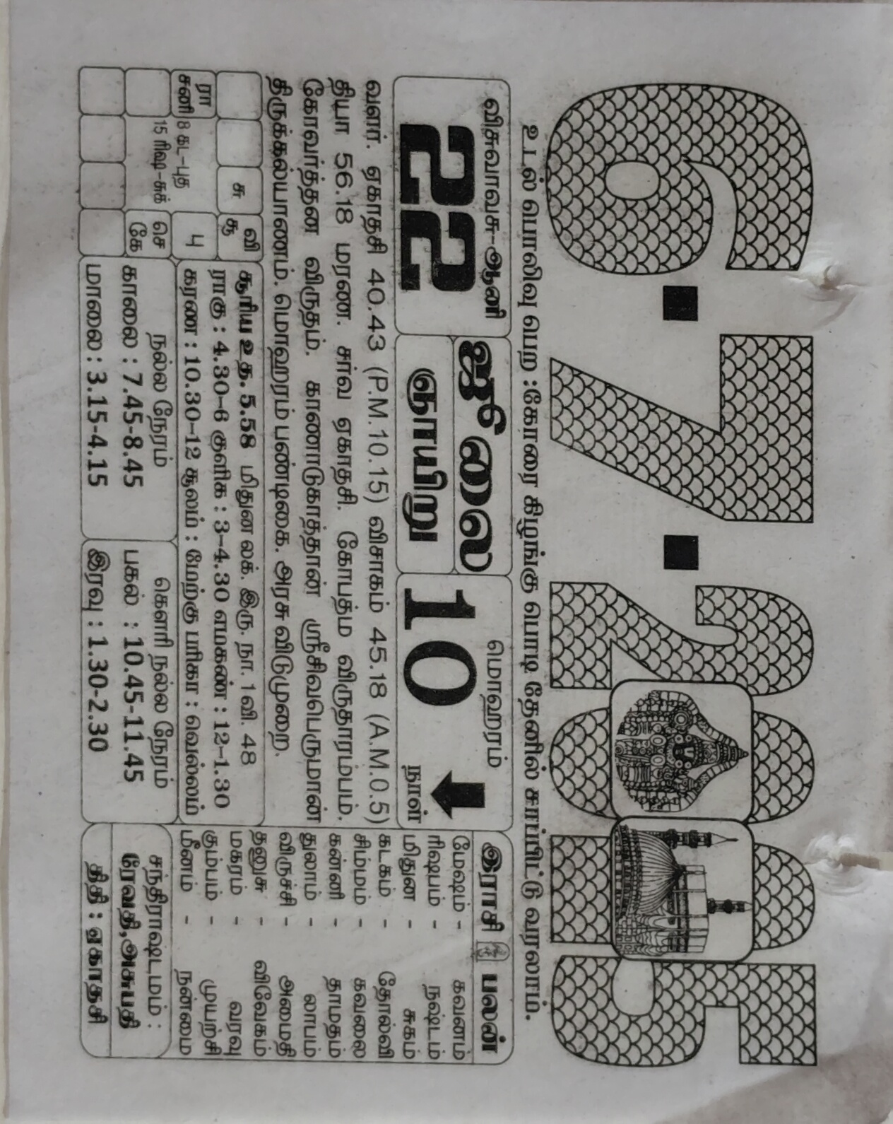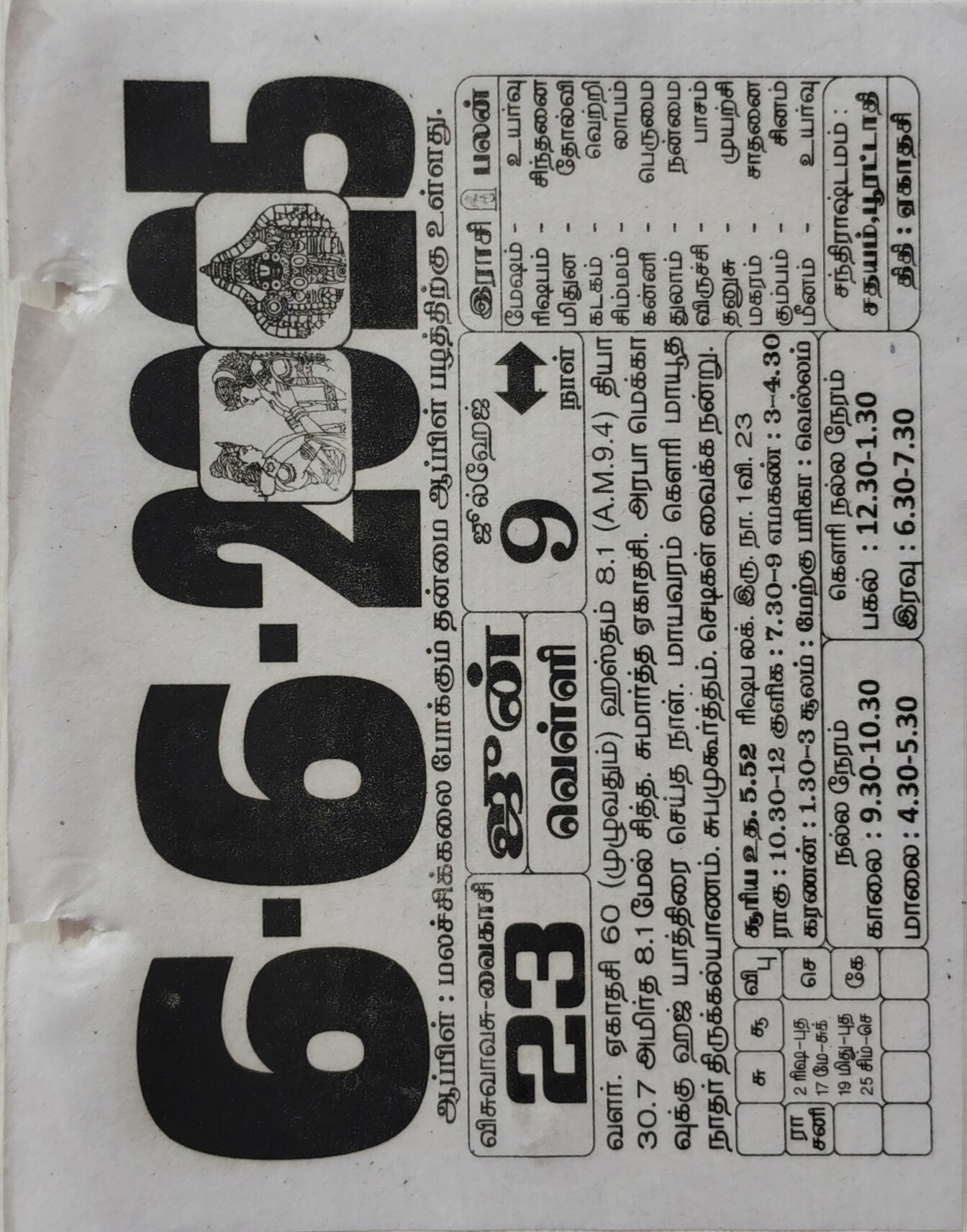 | நாள்/Day | ஞாயிறு (Sunday) |